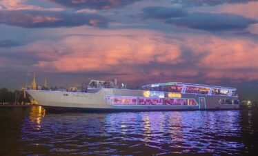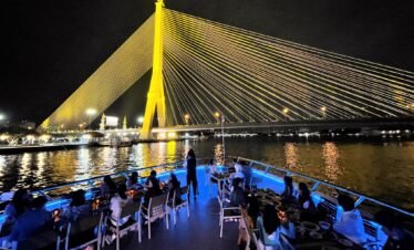 Step aboard the Chao Phraya Princess Cruise for a memorable evening journey along the river. This scenic cruise offers a unique perspective of Bangkok’s most famous and sacred landmarks illuminated at night. As you glide across the water, indulge in a grand buffet dinner featuring a fusion of Thai and global cuisines. Enhance your dining experience with live music performances filled with nostalgic hits, creating a vibrant and entertaining atmosphere suitable for friends, families, and couples of all ages. It’s the perfect way to enjoy a beautiful night in Bangkok.