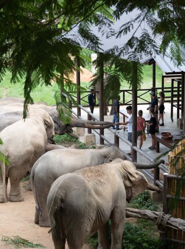 Maintain respectful distance from elephants except during supervised feeding